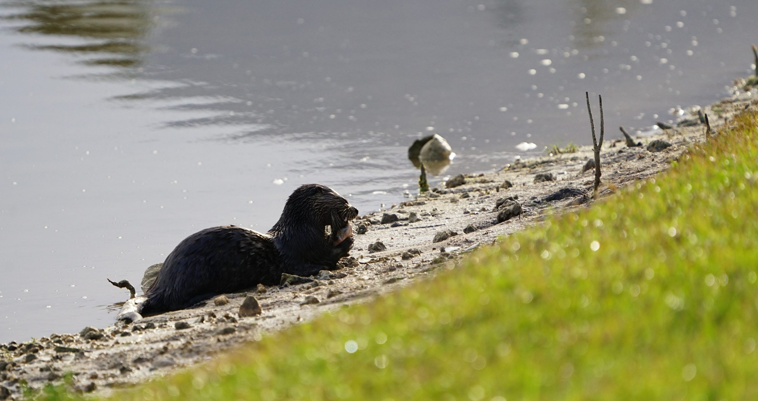 I then went outside and saw this (video above). There is a quite unusual freshwater otter on the lake. I have only seen it once and made a rare appearance, chomping away on a catfish for breakfast. The other birds are very cool too. A Great Blue Heron also made a rare appearance.
